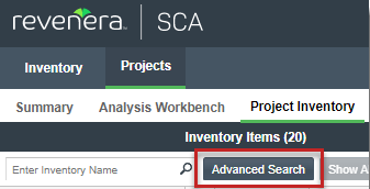 Open the Project Inventory tab for the desired project (see Displaying Project Inventory). The Inventory Items list is displayed in the left pane.