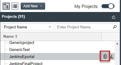 (Optional) Click the My Projects toggle at the top of the list to show only those projects with which you are associated as Project Contact or through a project role. (For details, see Showing Only Your Projects.) You can also search projects by name, inventory, or security vulnerability as described in Searching Across All Projects in Code Insight.