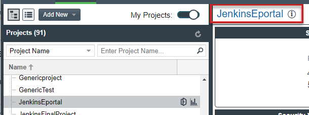 • Click the project name (in the example, JenkinsEportal) in the title bar of the right panel: